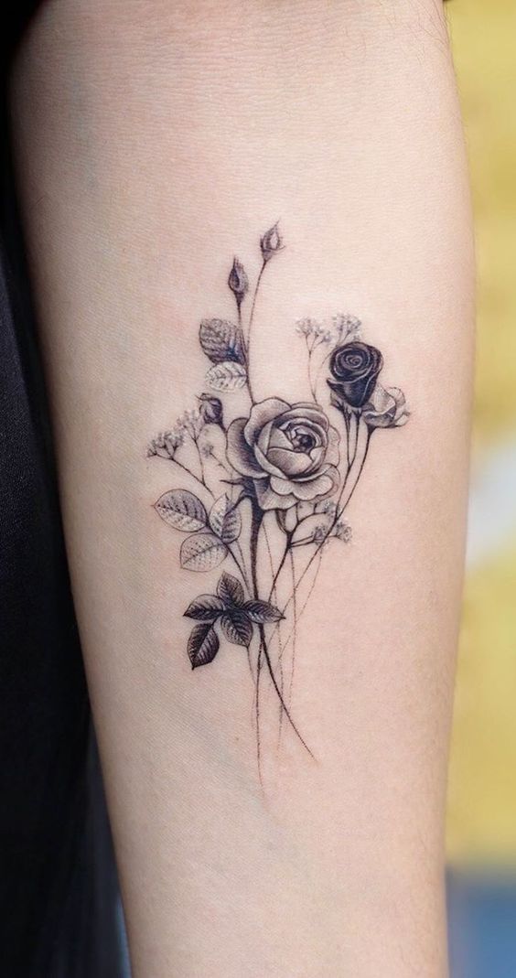 2. Fine Line Rose Bouquet Tattoo