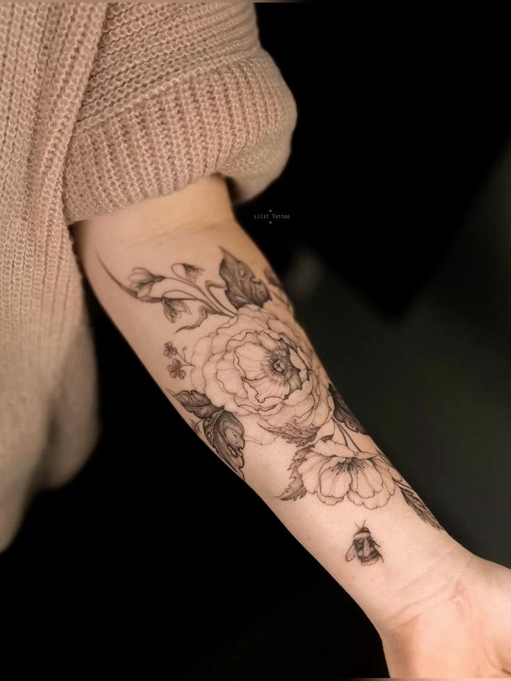 This style is ideal for those who appreciate more detailed stencil-inspired floral designs. It works beautifully on the forearm or as part of a larger sleeve concept, blending well with other botanical elements. It’s a great choice if you want a tattoo that feels rich, artistic, and full of natural movement.