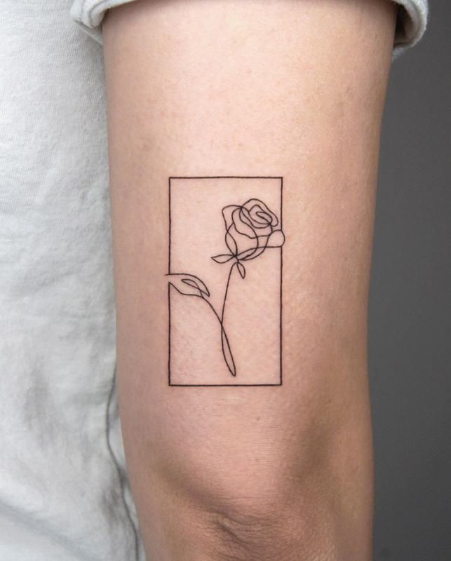 4. Minimalist Rose in a Frame Tattoo