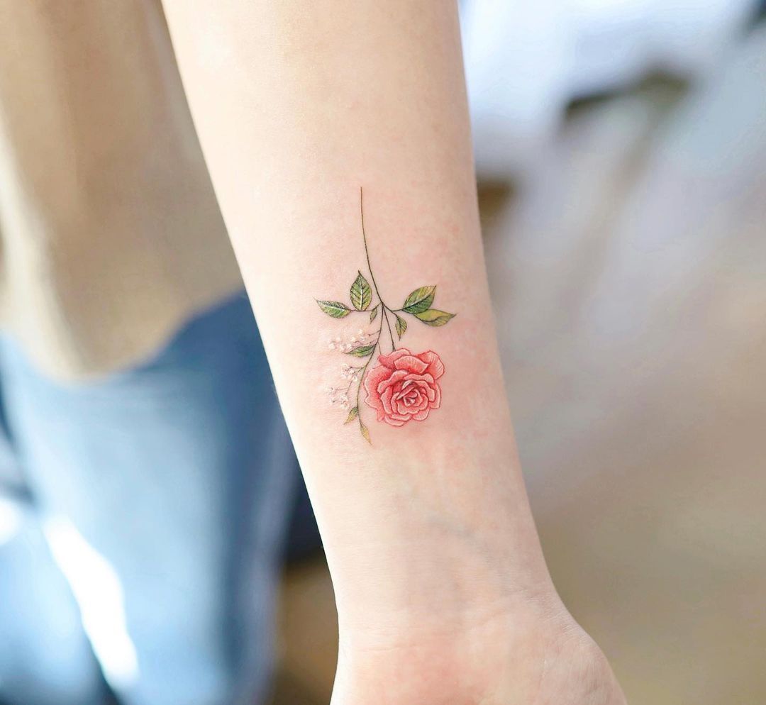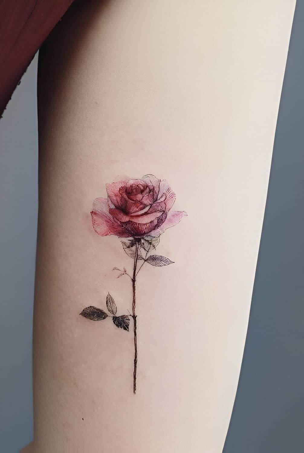 If you’re drawn to simple fine-line ideas, this is an ideal low-maintenance option. It works beautifully for first tattoos and looks especially elegant on the wrist. The minimalist rose design ages gracefully and suits anyone who prefers subtle, delicate body art.