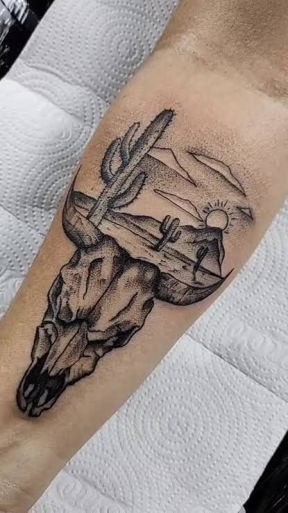Ideal for those who love western ideas with symbolism, this design fits forearms and calves well. The dotwork shading adds texture without overwhelming the eye, making it a great low-maintenance option that still feels thoughtful and strong.