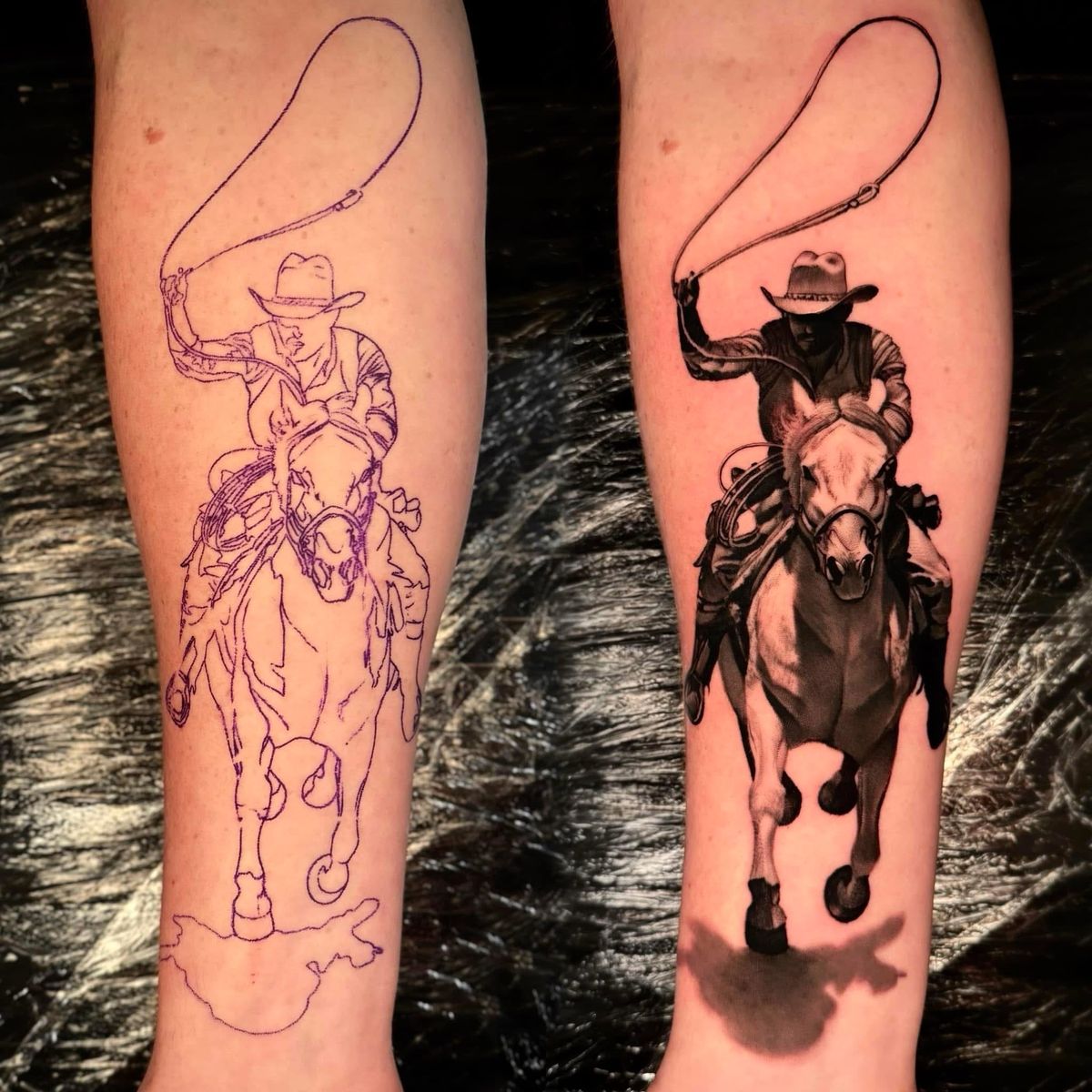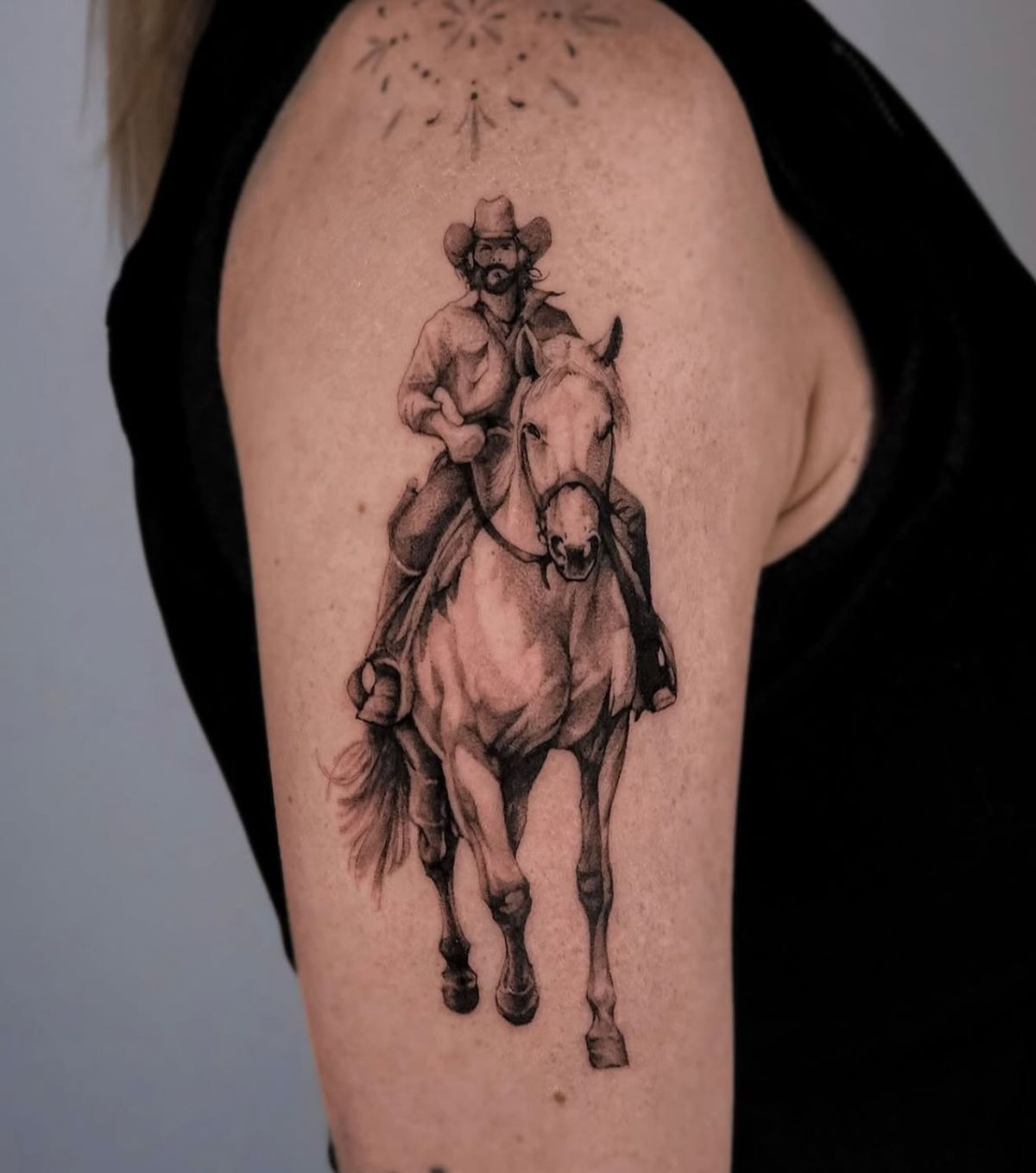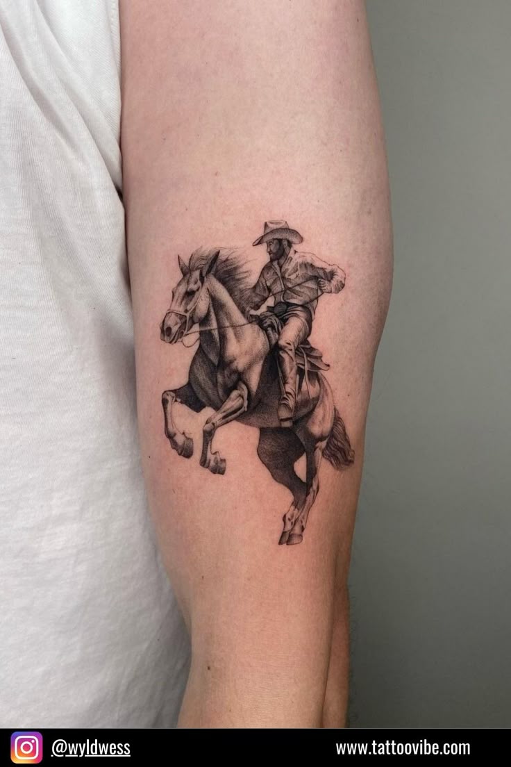 This is a great option if you’re drawn to simple yet emotional cowboy ideas. Works well on arms or as part of a larger sleeve. If you appreciate fine-line detail and tattoos that feel thoughtful rather than loud, this design is a beautiful choice.