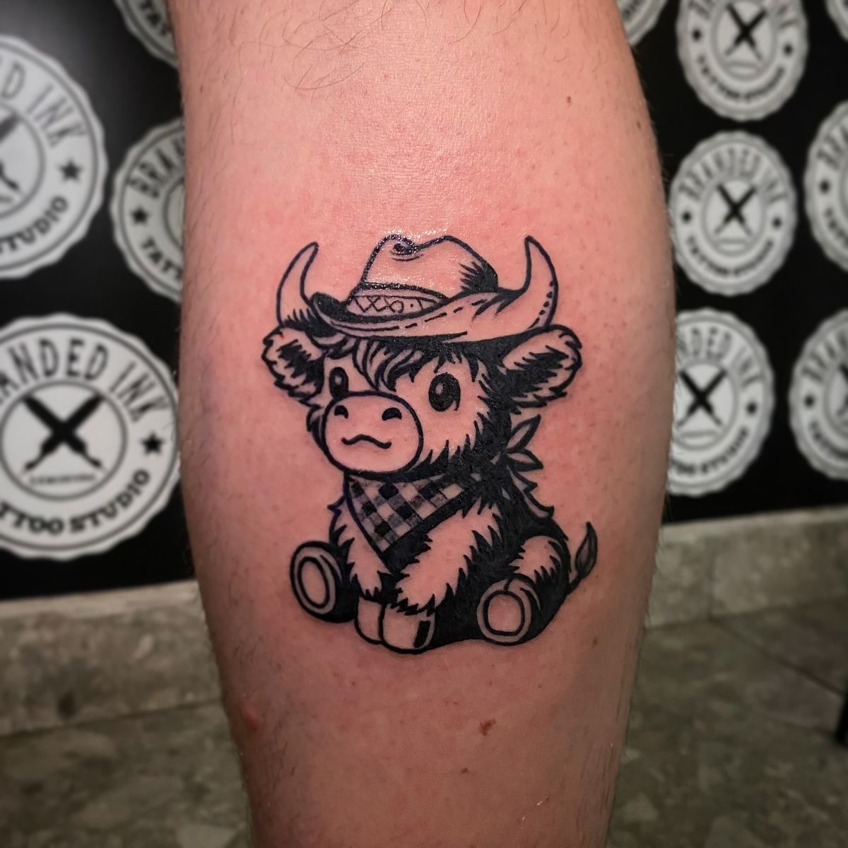 This little guy is impossible not to love. A cowboy bull with soft features brings warmth and charm, mixing western themes with a slightly whimsical twist. It feels friendly, comforting, and unexpectedly emotional—like a tattoo that doesn’t take itself too seriously.