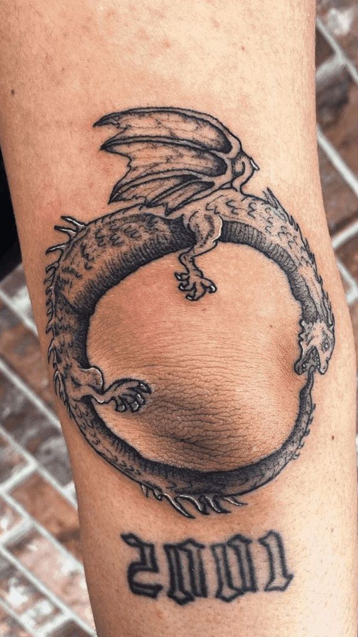 A slender dragon curls into an ouroboros, tail to mouth, circling the joint like living jewelry. Scales and wings are etched with light texture, giving an ancient-meets-modern feel that suits both women’s and men’s collectors. The circular design mirrors the anatomy perfectly, so the piece reads clean whether your arm is tucked or extended. It’s mythic without shouting—more story than spectacle—and it pairs effortlessly with a future sleeve.