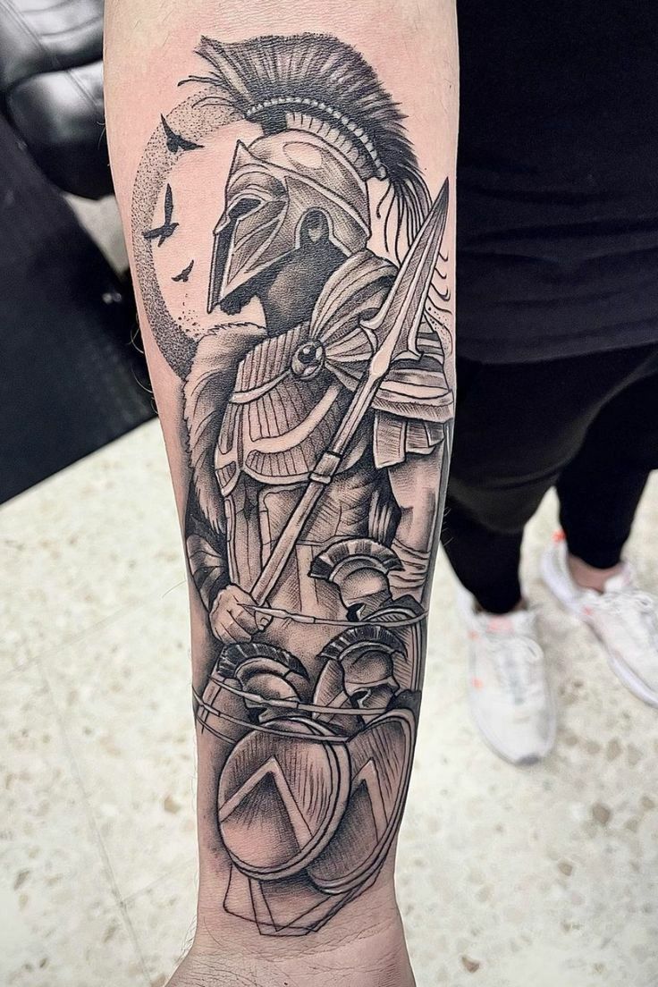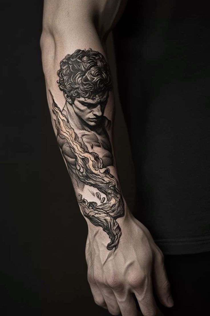 This is a strong men’s forearm option, especially for those who want a focused design rather than a full sleeve. It works beautifully on the men’s arm and can easily anchor future sleeve ideas men love. A solid pick for fans of classic Greek mythology ideas.