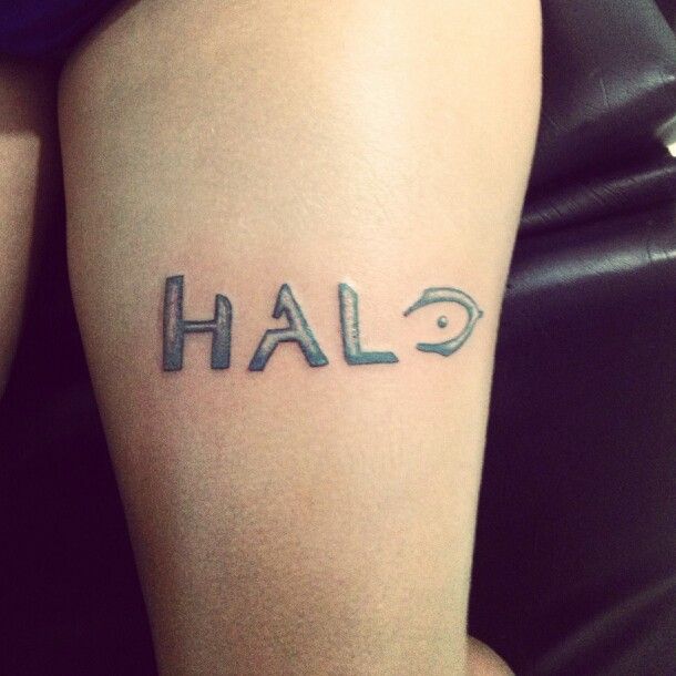 Sometimes the most powerful choice is just spelling it out. This tattoo uses the familiar Halo lettering, ending in that curved, ring-like symbol that feels a bit like angel wings wrapped into a single stroke. It’s clean and instantly recognizable to anyone who ever picked up a controller, but simple enough that it doesn’t overpower your arm or leg. Think of it as writing your favorite chapter title on your own skin—straightforward, honest, and proud.