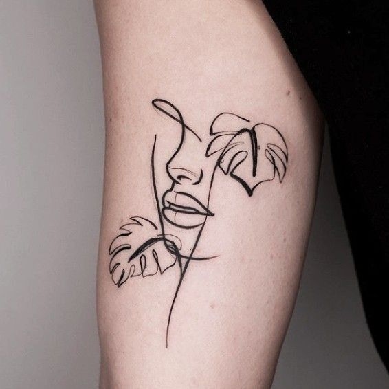 This beautiful line tattoo artwork incorporates a woman’s face with beautiful leaves that make her appear to be a mix between a muse and a houseplant deity of some sort. This is one tattoo that keeps a woman’s lips and the tip of her nose feminine in nature, with her entire face edged in large leaves that give this tattoo a dreamy, tranquil, near-tropical feel. This is a great idea if you’re a woman who likes a simple, fine look but wants a little bit of drama mixed in. This is where the vertical movement comes in, as this type of tattoo is great on the upper arm or thigh, where this will draw the eye. Better yet, this is a great choice if you’re one of those women who has a jungle of plants in your house, as this tattoo is essentially a small, subtle statement that will only continue to grow as time passes.