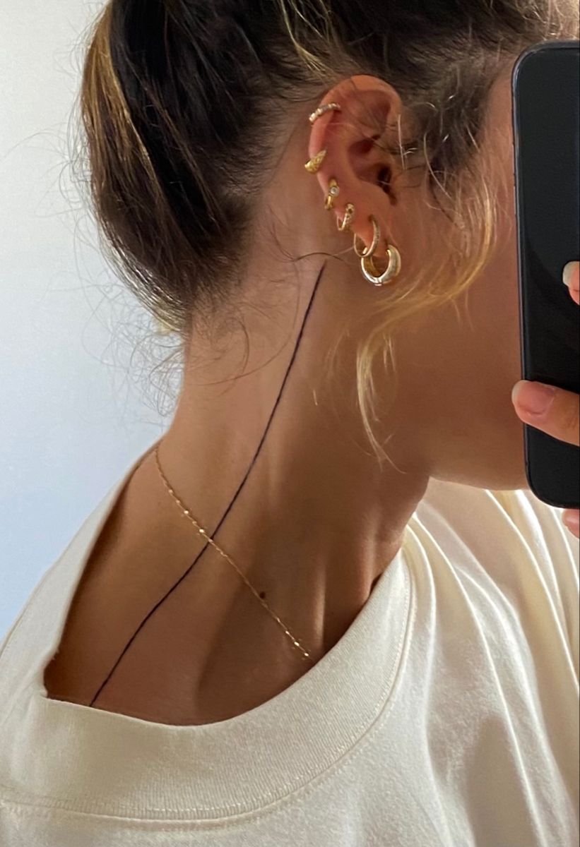 This is a great choice if you’re the type of woman who likes a simple tattoo that will speak to her character in a subtle way. This is essentially a string of ink that peeps out from the back of the ear, drapes over the neckline, and sinks into the collar. This tattoo gives a great piece of jewelry that never needs to be cleaned or needs to be unraveled. This is a fine, subtle line tattoo that is actually what is trending in 2025, particularly if one is a woman looking for something distinctive yet office appropriate. It is a great location choice not only for women, however, as is evident, making this a great way to match tattoos if one prefers small tattoos rather than large couples’ symbols. It looks great with a small pair of hoops or a small piece of jewelry around the neck, making this a great way to add a touch of subtle boldness that blends wonderfully with one’s everyday look.