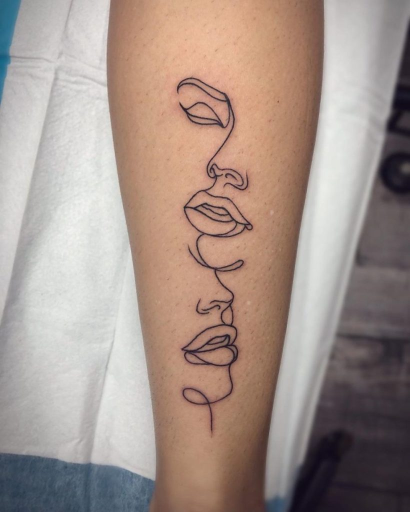 This tattoo of interwoven faces is a thin piece that looks as if it is a sketch that is torn directly from the notebook of a piece of artwork. It is one of those tattoos that speaks volumes whenever you glance over at it, as if a secret is hidden between those micro-fine curls in the piece whenever the lighting catches them perfectly.