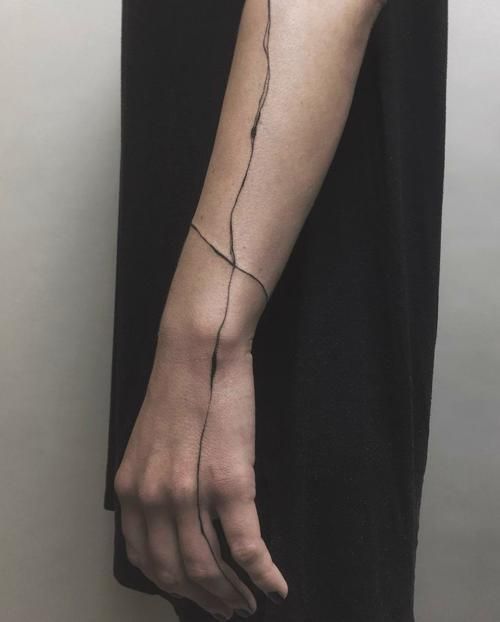 This tiny black line stretches from the hand through the entire forearm in a way that is only possible in nature—like a riverbed running through the center of a piece of porcelain. This tattoo is not only beautiful, with a subtle touch of flawlessness, but also seems as if it is a part of one’s body, as if it had always been there. *The entire design is radiating a coolness that is equal parts abstract artwork and a subtle defiance of more intricate tattoo designs.* This is a fantastic idea if you’re drawn towards minimalist, exquisite design with a touch of something a little more unruly and spontaneous. Since the design path follows certain structures in the hand/wrist, this tattoo will look stunning on any creative woman who uses a lot of hand gestures during conversations, making every moment a mini-show.