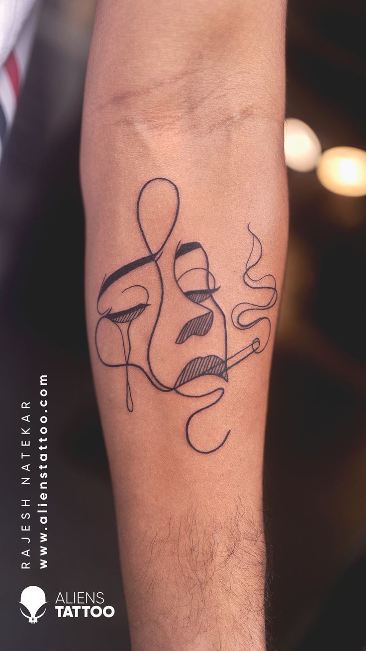 This is a bold design option for those who appreciate abstract storytelling in body art. It works well on the arm, where the line work stays crisp, making it a unique and visually engaging statement piece.