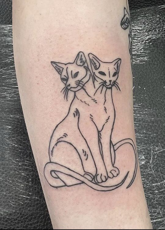 This is a lovely idea option for animal lovers who prefer simple, expressive tattoos. The fine black outline keeps it lightweight and easy to maintain, making it a great fit for forearm or calf placements where the cat figures can stay clear and elegant over time.