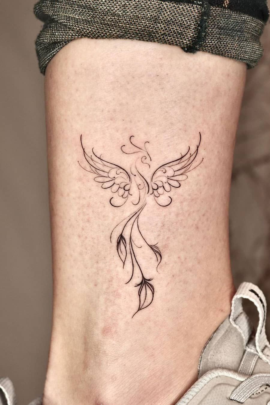 This phoenix design feels light, airy, and full of emotional meaning—like rebirth captured in flowing lines. The wings curve gracefully, creating a sense of movement and freedom that feels empowering and deeply symbolic. It carries a soft feminine energy while still feeling strong and confident.
