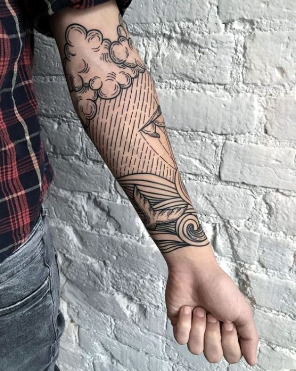 This design option works especially well for sleeve placements and longer forearm areas where the flow of the lines can stretch naturally. The black ink keeps it timeless, and the abstract movement makes it easy to expand later into a full sleeve. It’s a strong choice for men who want a statement piece that feels dynamic but still refined.