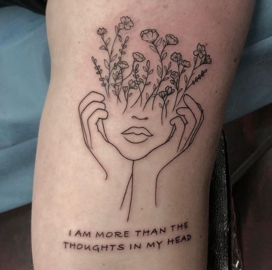 The vibe is introspective and quietly strong. This tattoo gives off an artistic, thoughtful attitude—perfect for someone who processes emotions deeply. It pairs beautifully with minimalist wardrobes and natural makeup, letting the ink speak for itself. Among mental health tattoo ideas, this one feels especially mature and self-aware.