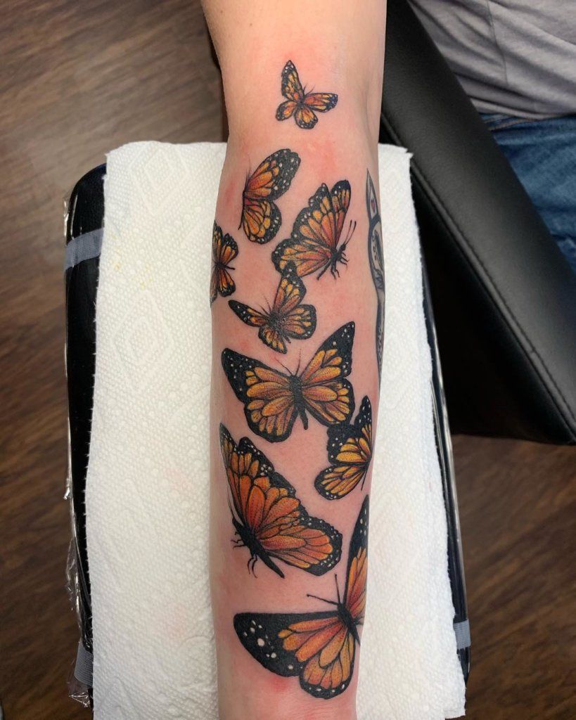 8. Monarch Swarm Forearm Sleeve for Maximum Drama