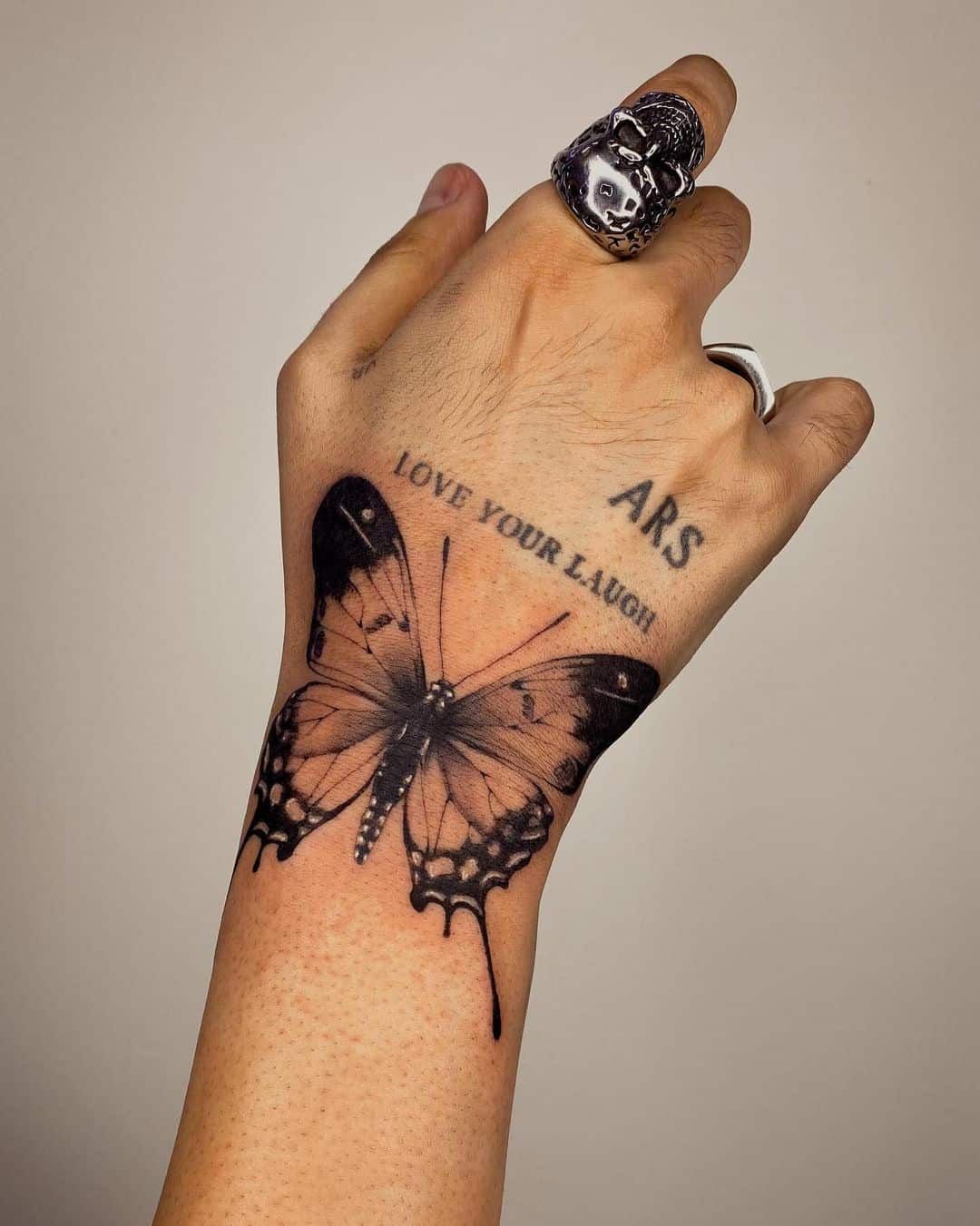This one is pure “don’t mind me, I just casually have art on my body.” The butterfly looks like it’s hovering, and that shadow effect gives it a dreamy 3D lift—like the moment right before you exhale and everything feels possible again. It’s a little playful, a little bold, and honestly? It reads like confidence without needing a speech.