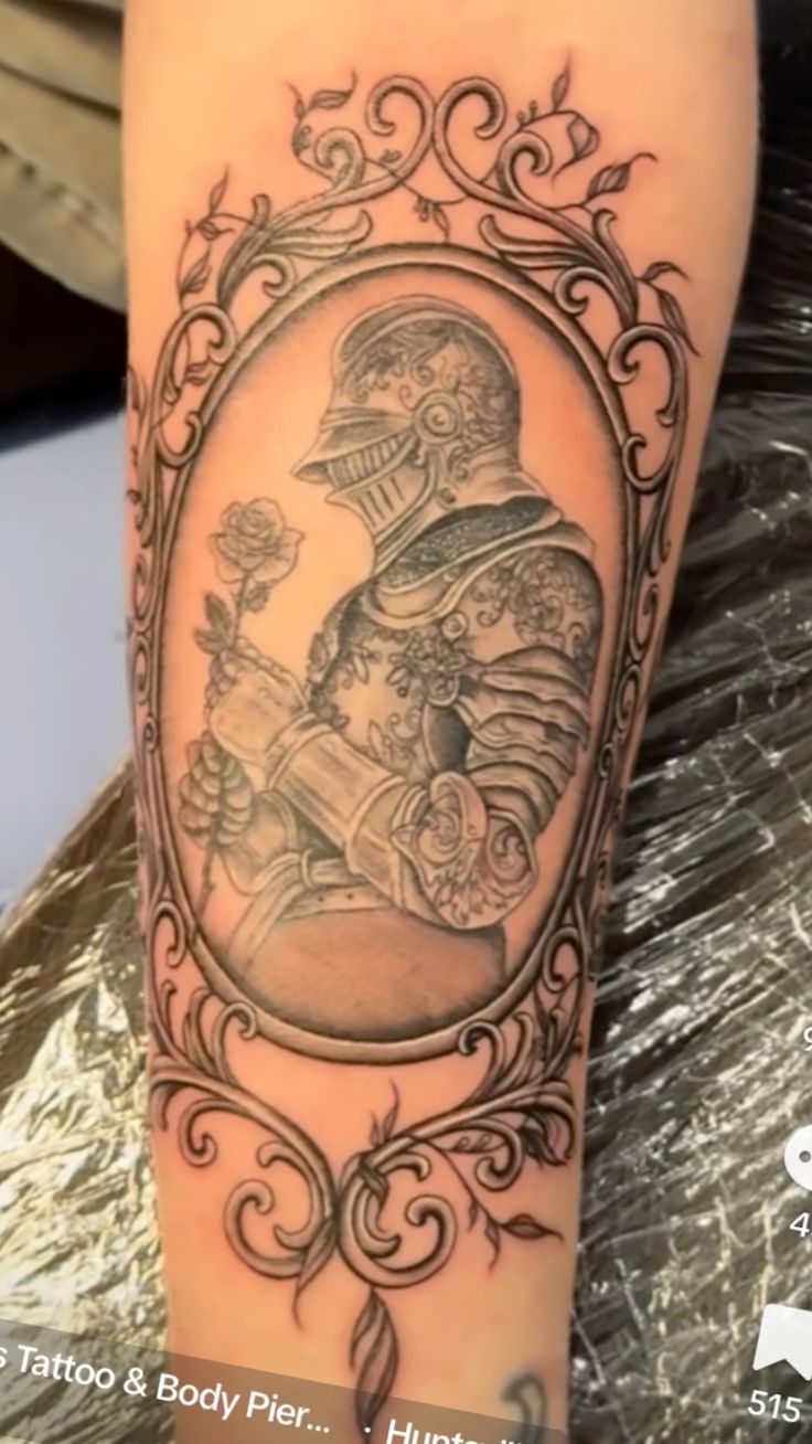 This design is a beautiful option for those who want a feminine take on knight ideas without losing power. It works well on the upper arm or forearm, especially for people who love fine linework and gentle, poetic storytelling.