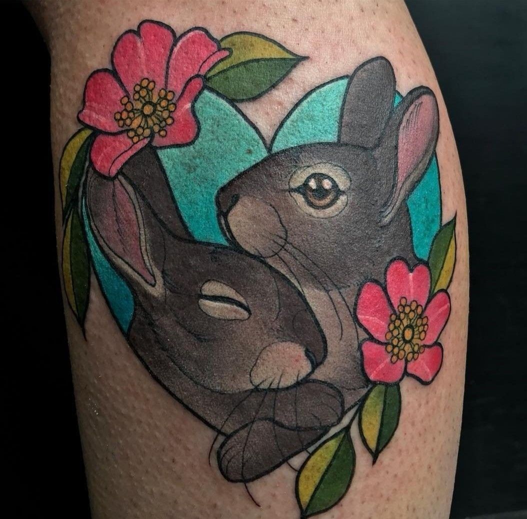 Interested in sporting a new and lovely tattoo? These designs range from minimalist fine-line tattoos to bold American traditional hares integrated with lovely little flowers, delicate moons, and adorable running poses. For daily wear, you might find something simple and minimalistic, but for something romantic and storybook-esque, you will find something stylish and personal that suits your needs—especially for those who love nostalgia, luck, and artistic touches.