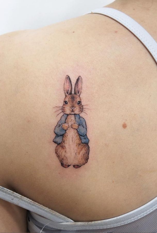She appears to be a little hand-drawn figure embraced by a story, with a bunny decked out in a very patriotic outfit, who has also learned to appreciate beautiful works of art. It is this manual way of adding finer works of art that makes it so effective, in avoidance of darker ink. It is just a story in itself becoming incorporated into a beautiful tattoo, which photogens well with summer dresses and spray tops and is meant for someone who is slightly on the playful nostalgia side and enjoys becoming more mature and meshing with modern designs. Who it’s for: If you’re drawn to Peter and want a minimalist scale that stays feminine, this placement is ideal. Small shoulders heal quickly and hold fine line work well, especially when you favor lighter shading over heavy black. Ask your artist for crisp line weights and a soft color palette so the ideas remain airy; a thin stencil keeps edges neat while preserving that hand-painted feel.
