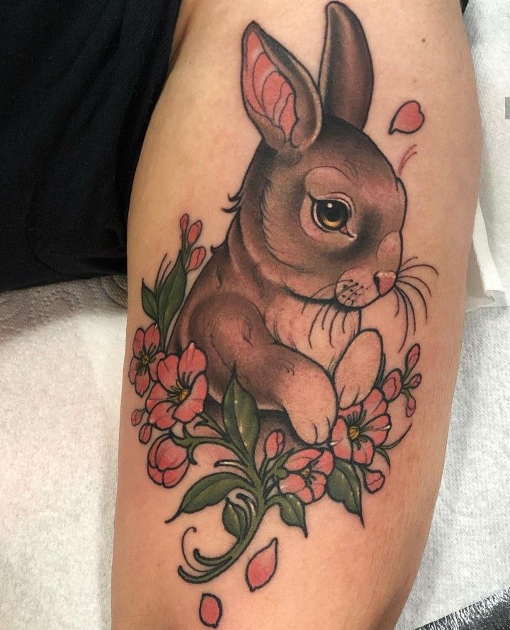 3. Blossom-Cradled Bunny (American Traditional Touch)