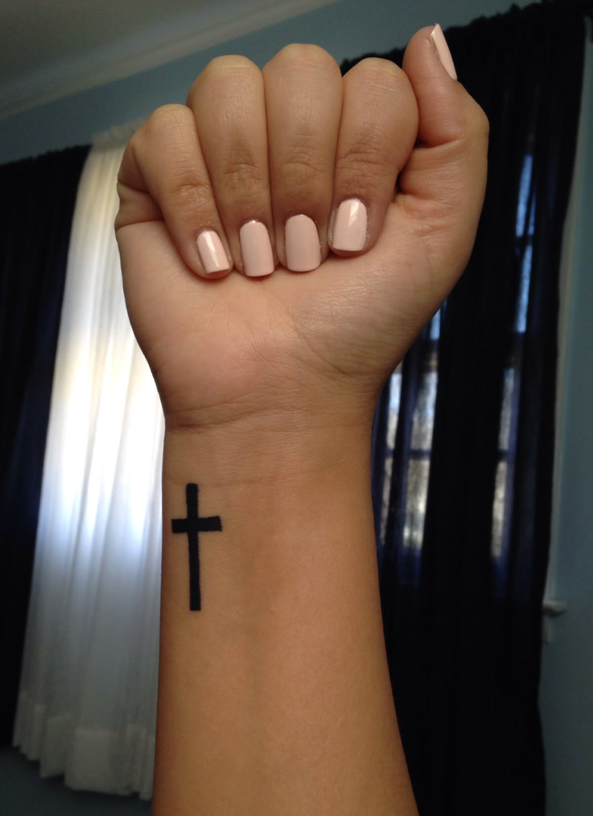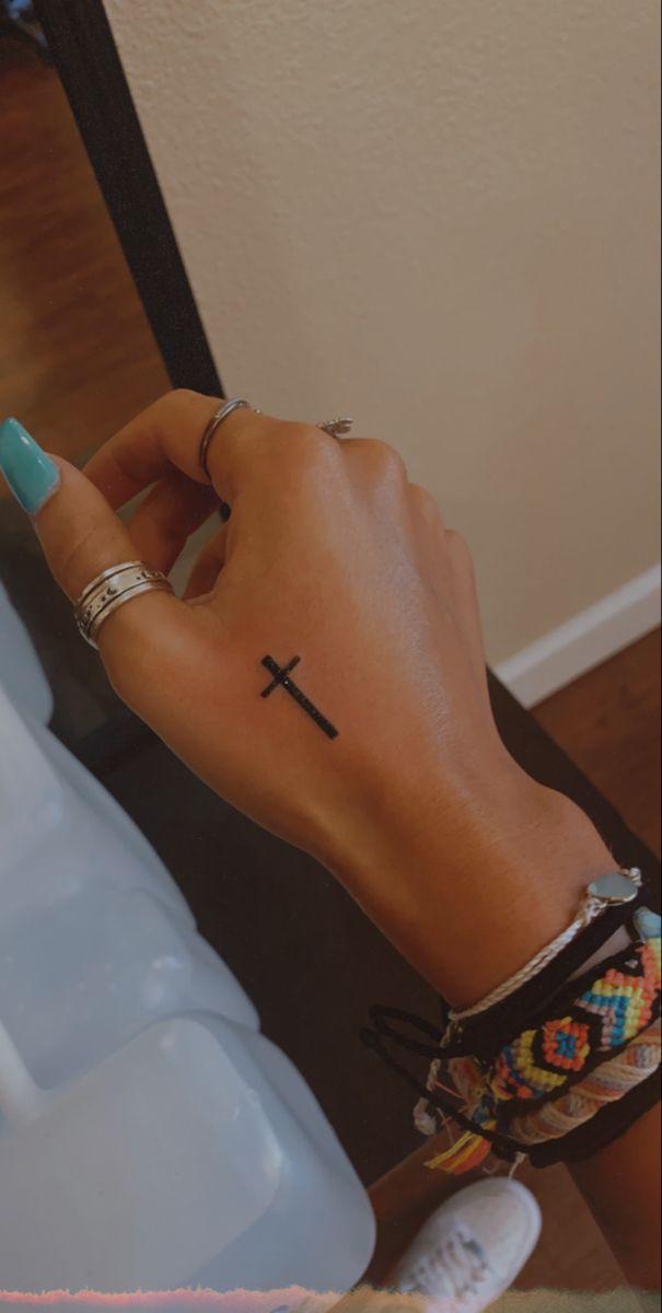 For women who love layering bracelets or watches, this placement on the wrist is incredibly flattering. The small size keeps the tattoo elegant and Cute, while the clean lines maintain a Simple aesthetic. It’s one of those cross tattoo ideas that feel stylish and modern without losing their deeper meaning.