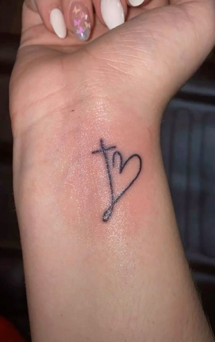 There’s something beautifully tender about a cross that flows directly into a heart. It feels like a quiet reminder that faith and love often walk hand in hand. The soft curve of the heart balances the straight lines of the cross, giving the design a gentle, almost handwritten feel that looks personal rather than overly polished. It’s the kind of tattoo that feels meaningful every time you glance down at it.