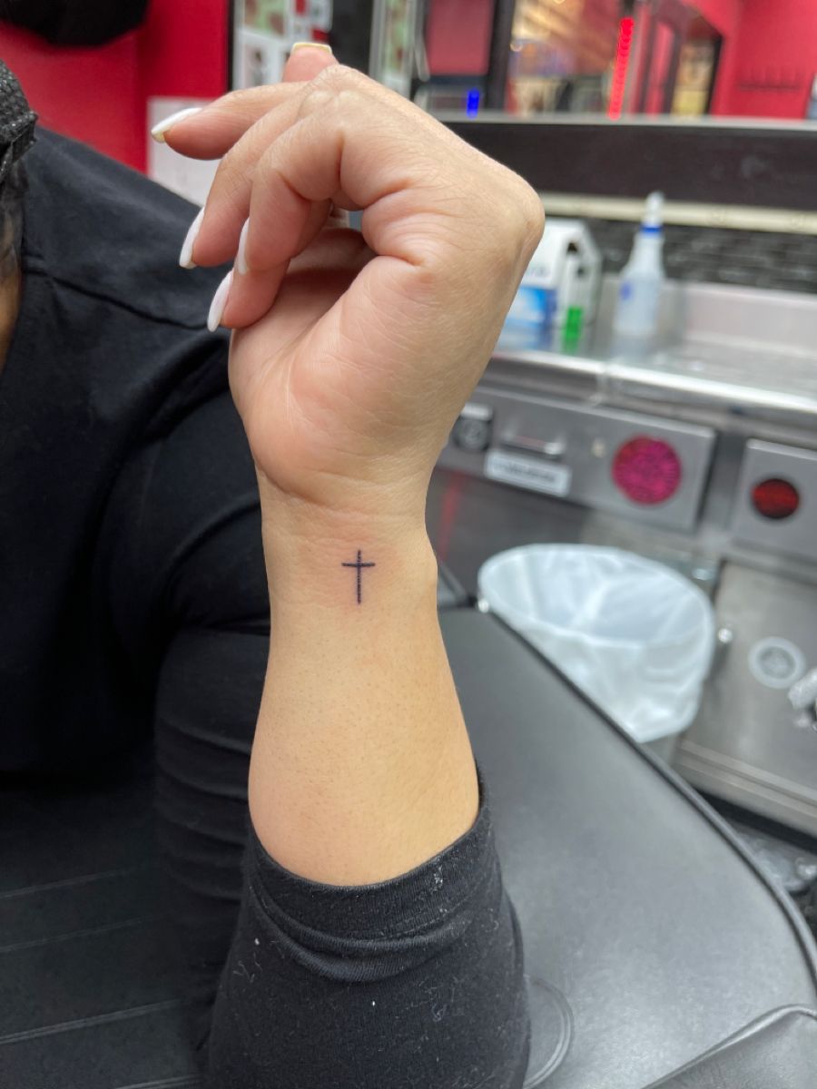 Minimalist cross designs like this have become one of the most requested tattoo ideas in recent years. The clean lines make it perfect for women and Men who prefer subtle ink that blends easily into everyday style. Because the placement on the wrist stays visible without being overwhelming, it’s a wonderful option for anyone exploring their first small cross tattoo.