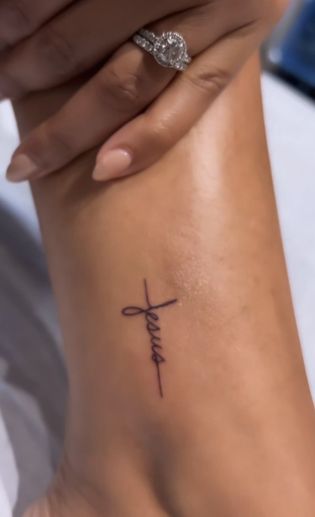This design almost looks like part of the jewelry itself. The cross rests naturally among the bracelets, blending faith with personal style in a way that feels effortless. It’s the kind of tattoo that doesn’t compete with accessories—it complements them beautifully.