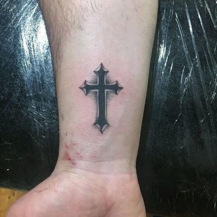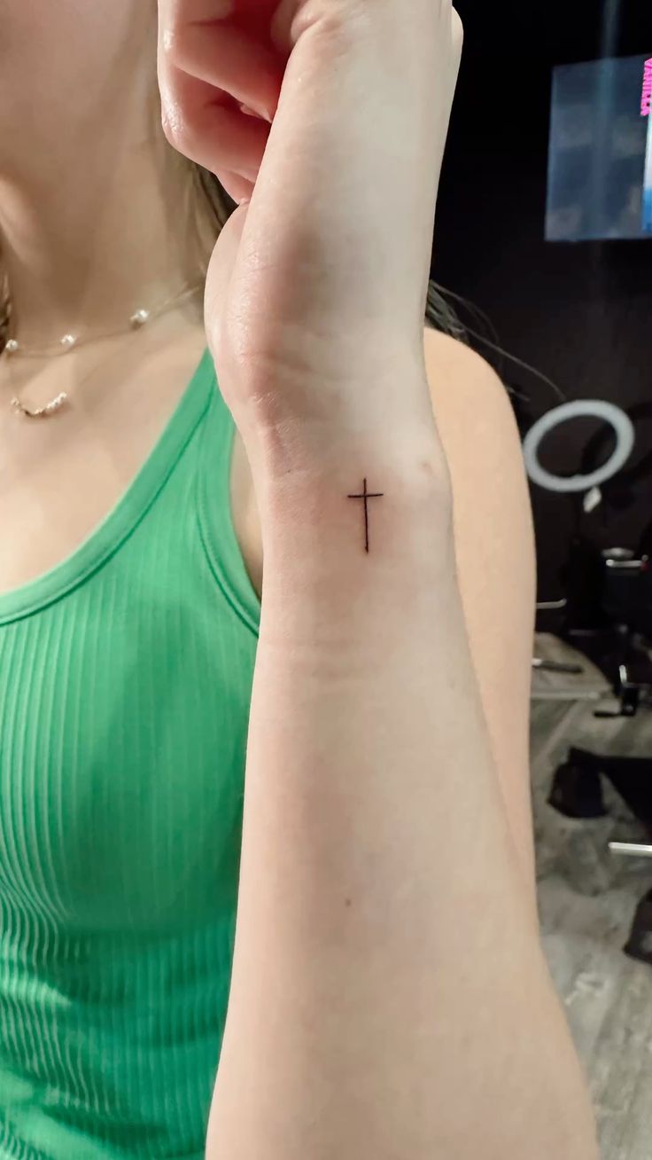 For women who love minimal tattoos, this is one of the most classic placement choices for women. The wrist area allows the design to stay visible yet subtle, and the fine-line stencil keeps it elegant. It’s one of those cross tattoo ideas that never feels trendy—it simply stays timeless.