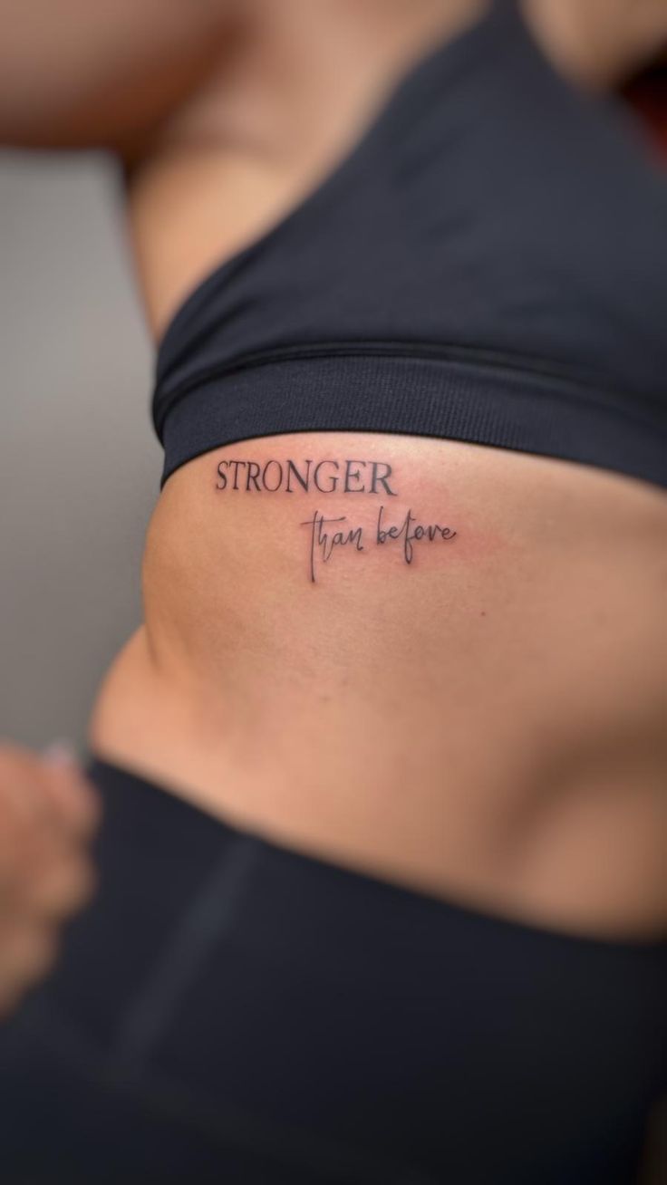 16. “Stronger Than Before” Rib Tattoo
