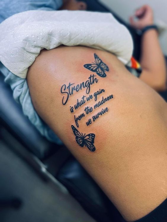 8. Butterfly Strength Quote Tattoo