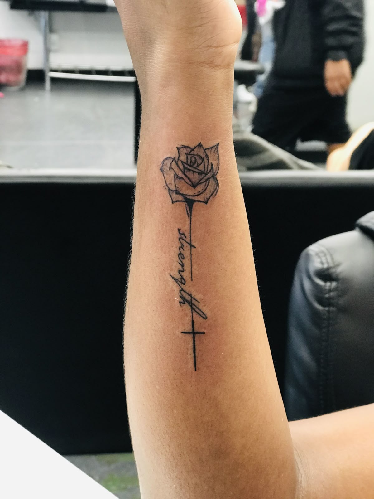 5. Rose and Cross Strength Tattoo