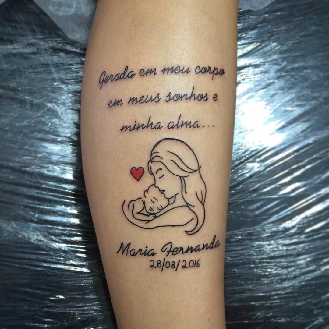 This final design ties up everything in a nice package, presenting a moody image of a mother holding a baby, a small red heart pressed between, while a flowing message trails off at the top as if it were written specifically from your own journal entry. The name and date below ground it as a story of *your* child, as opposed to a simple illustration, so it reads as a kind of message welded directly into your own skin. It’s a tat design that can bring a sob to a very mature mother’s eyes as she spots herself in a mirror. If you have been holding off on ideas for a baby tattoo, this is the push you need. The graphics are smooth, the message is powerful, and it looks amazing on a mom’s arms, as well as being a gorgeous shoulder piece for Mom, where it can be concealed as easily as it can be displayed. In this piece, you don’t need footprint or handprint artwork, as the message speaks for itself. Whenever life gets a little too much, just take a gander at this small-scale illustration, which always brings perspective on exactly why all the commotion is worth it.