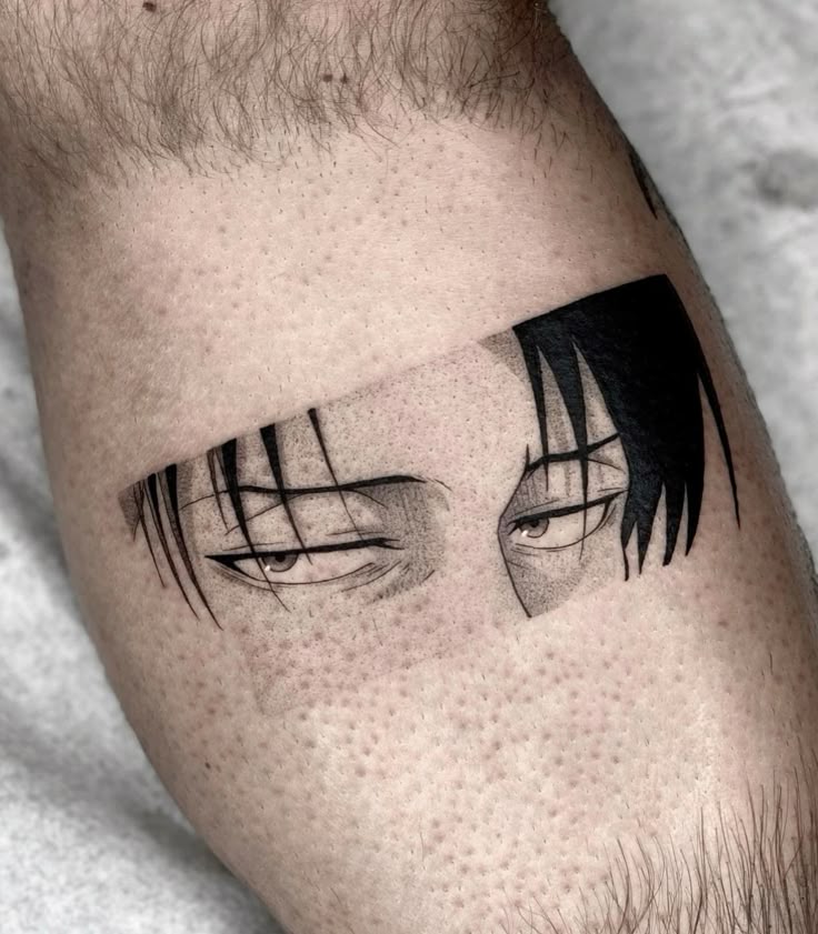 There’s something deliciously subtle about this narrow band of Levi’s tired, unimpressed eyes. It’s the definition of minimalist anime tattoo ideas—no extra lines, no background, just that iconic gaze that says everything without a word. From a distance, it almost reads like an abstract strip of art; up close, fellow fans get the joke instantly. It’s a great way to keep your fandom close while still looking polished and grown-up, especially if you’re balancing work dress codes with your love for stylish ink.
