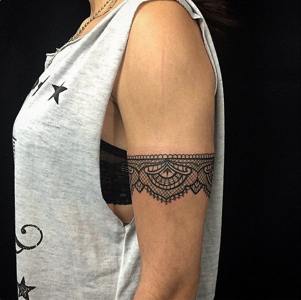 There’s something undeniably confident about wearing a lace-inspired band higher on the arm. It feels bold yet elegant, like lingerie turned into permanent art. The intricate pattern adds texture and drama without needing color.