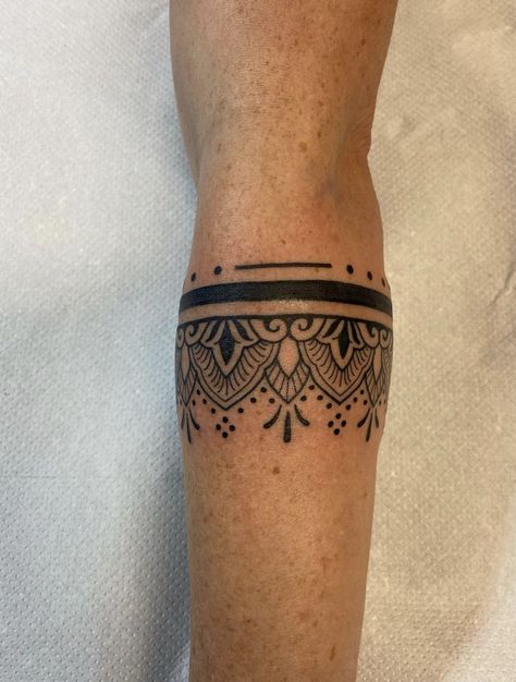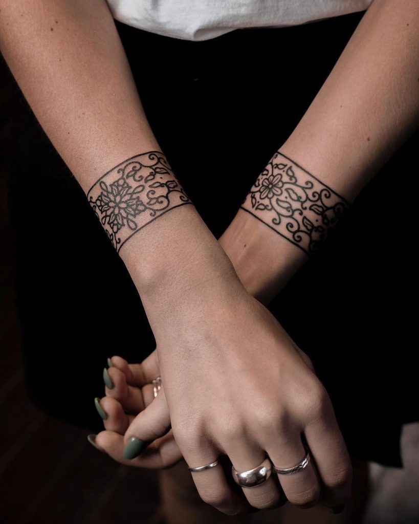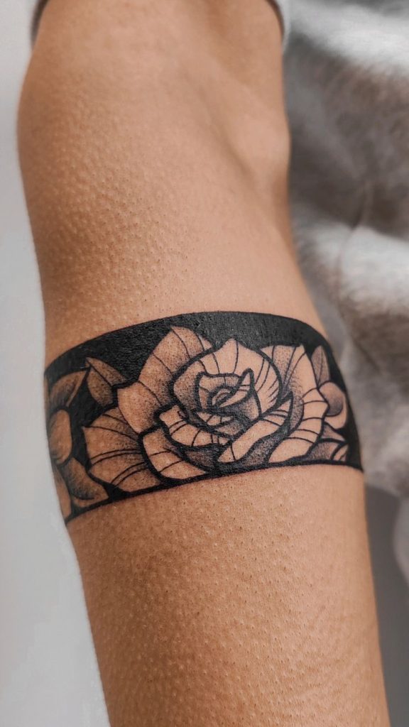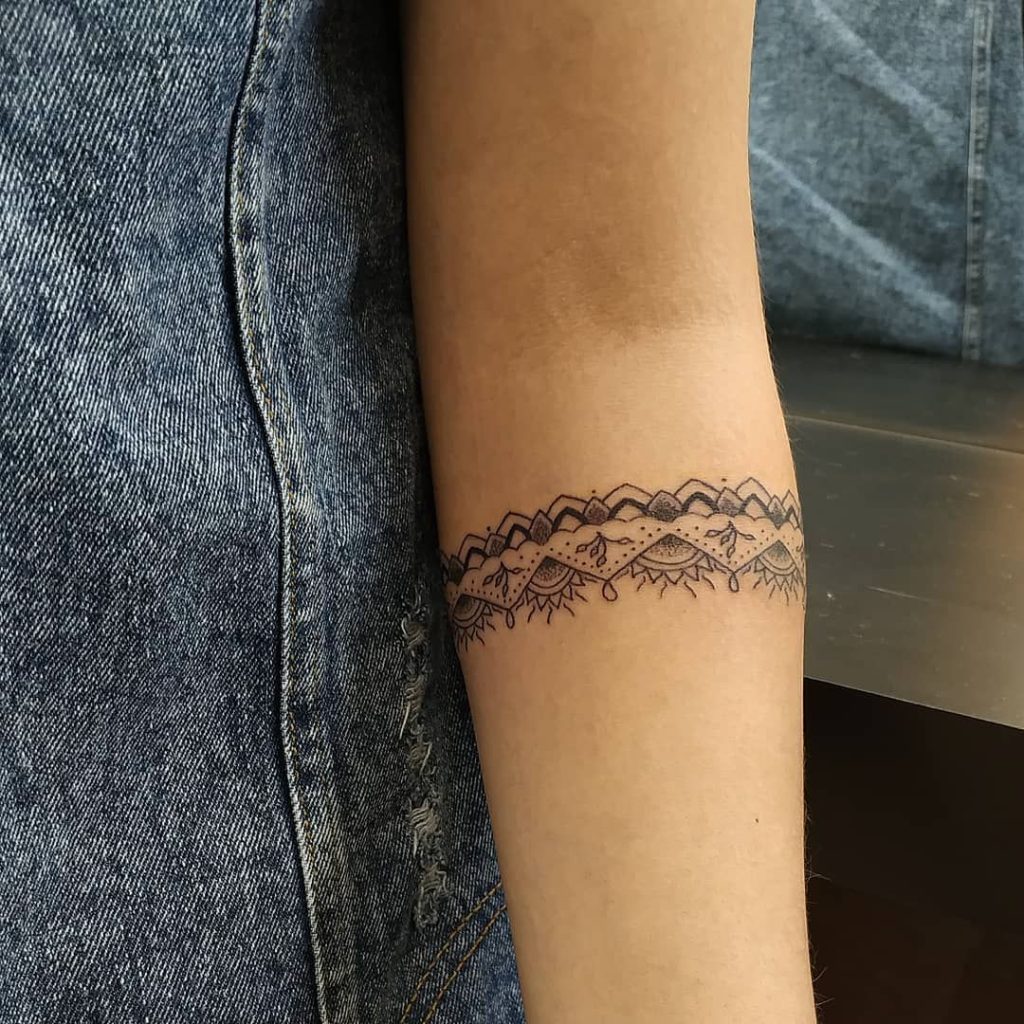 As a wristband tattoo, this style works beautifully for women who want something timeless. The medium weight of the lines helps it hold up over time, and it pairs effortlessly with both casual and dressier looks. It’s a solid choice if you love enduring design over trends.