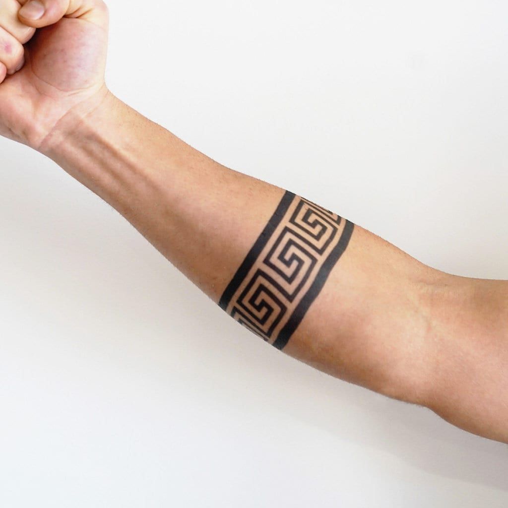 This design works beautifully for men and women who appreciate structure and simplicity. As a wristband tattoo alternative placed higher on the arm, it suits active lifestyles and minimalist wardrobes. It’s especially flattering if you want something symbolic yet low-key, with a timeless, architectural feel.