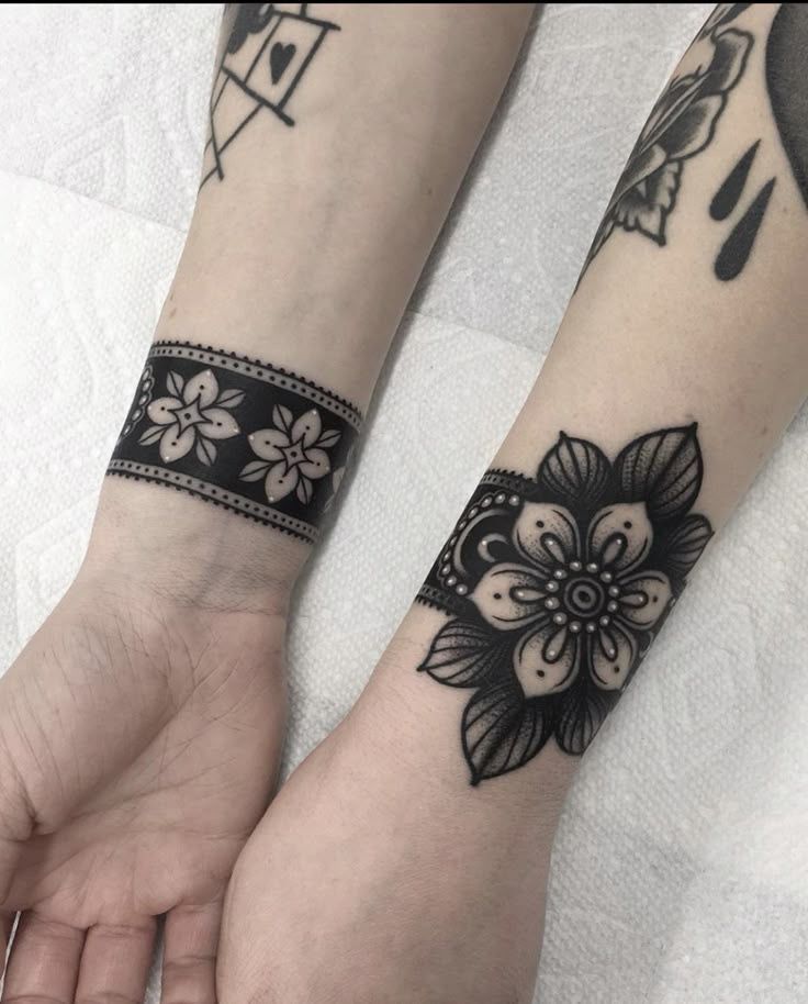 This design is ideal for women who want a statement that still feels refined. The placement makes it flattering on many body types, and the detailed linework ensures it ages gracefully. It’s perfect if you love bracelet tattoo ideas but want something a little less expected.