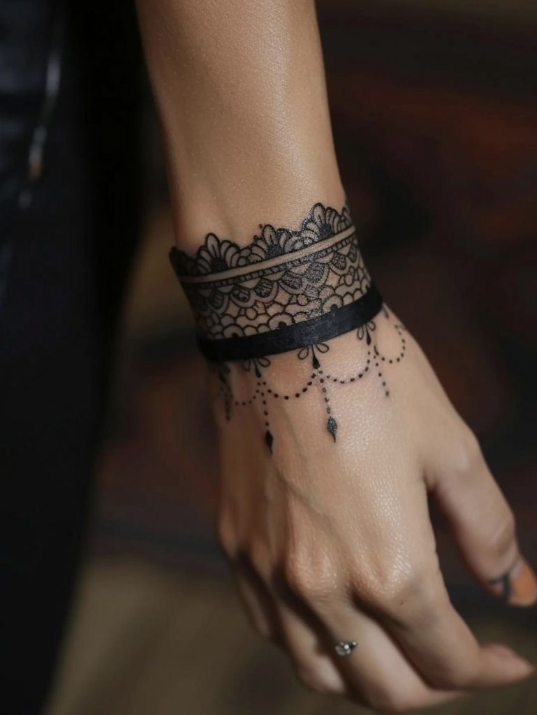 11. Lace-Inspired Bracelet Tattoo with Soft Draping