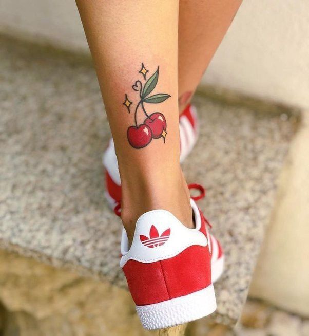 If you love Simple yet striking ideas, this design works beautifully for women who want a clean look with personality. The soft shading keeps it vibrant while still feeling polished. It suits almost any placement—ankle, forearm, or even behind the ear—and the bright red tone holds up well over time. Ask your artist for a crisp outline to keep that glossy effect sharp for years.