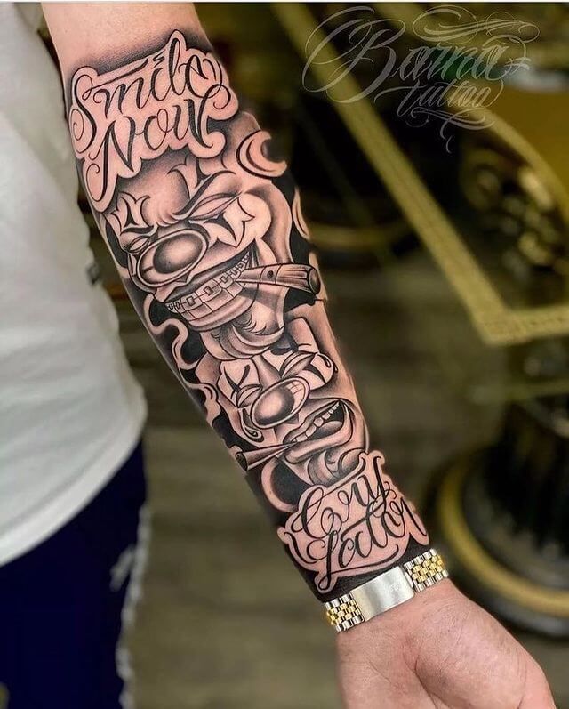 This is a natural fit for sleeve designs and looks incredible on the forearm or full arm. Ideal for men and women who love lettering styles and visual impact. The composition makes it easy to expand later, and the flow works beautifully with other design ideas if you’re thinking long-term.