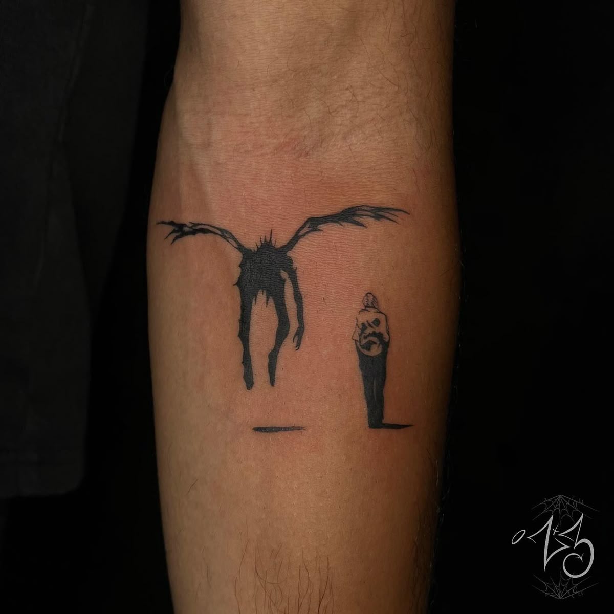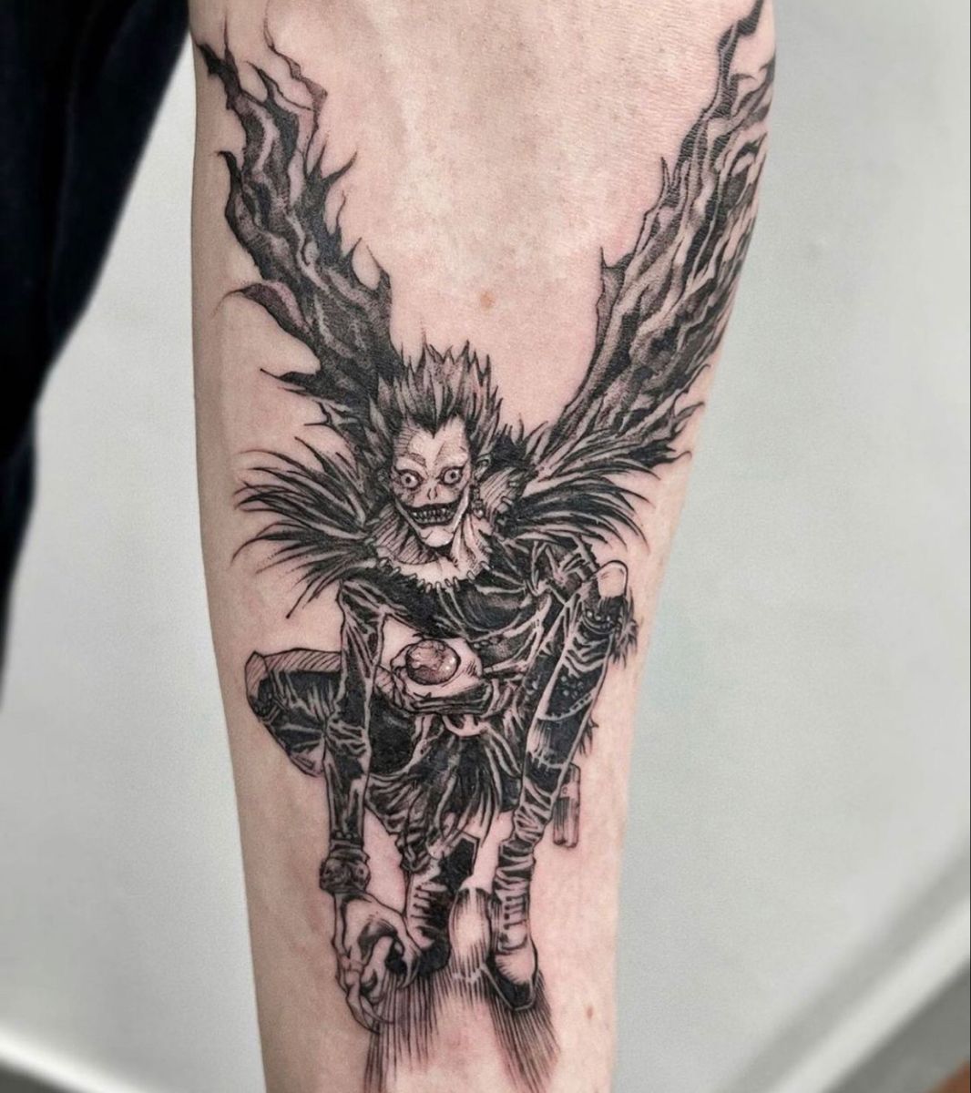 This design feels dynamic, almost like Ryuk is mid-descent, caught in a powerful moment of movement. The wings add drama and scale, giving the tattoo an epic, almost mythological feel that’s impossible to ignore.