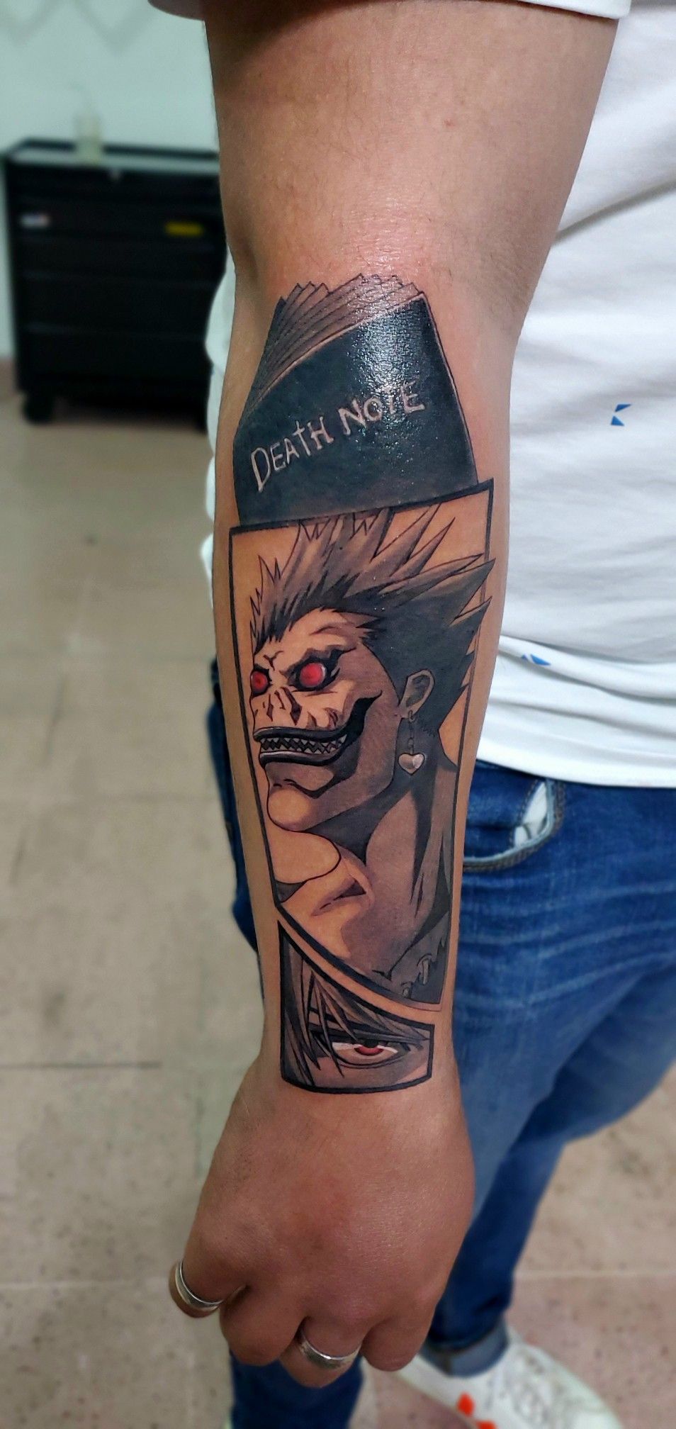 If you’re drawn to tattoos that evoke feeling over shock value, this one is a beautiful choice. It works best on areas like the thigh or upper arm, where the composition can stay balanced and readable. It’s proof that Death Note tattoo ideas can be deeply emotional, not just dark.