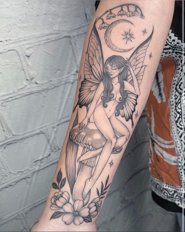 This design suits the forearm beautifully, especially for women who appreciate tattoos with layered meaning. The detailed realism pairs well with careful aftercare, and the storytelling element makes it feel deeply personal. Among fairy tattoo ideas, this one speaks to growth, patience, and self-awareness.