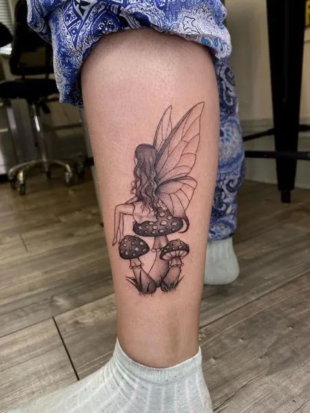 This tattoo is perfect for women’s leg placement, especially the calf, where its size feels intentional and balanced. Minimal shading makes it low-maintenance and easy to age well. If you love minimalist fairy designs that feel gentle and personal, this one fits beautifully.