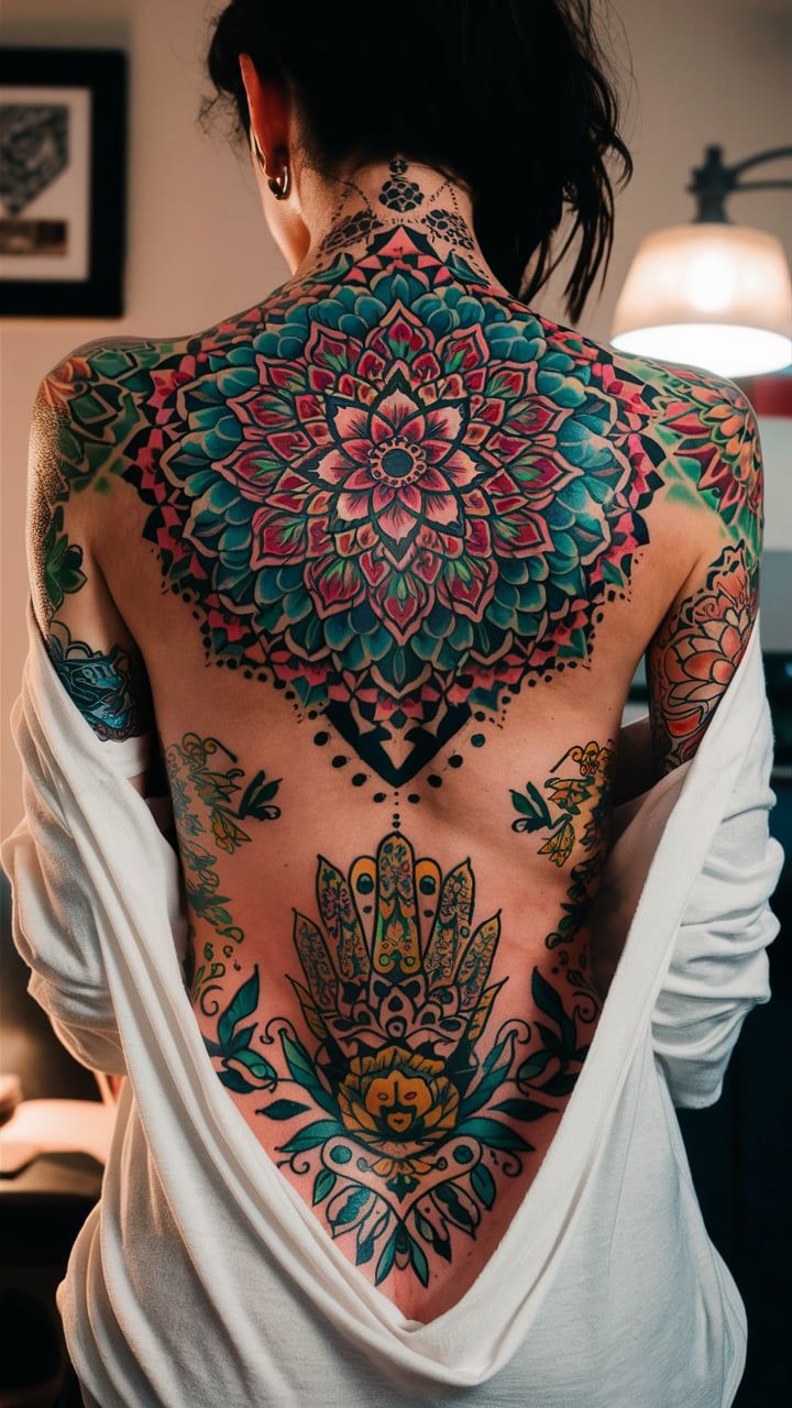 This design works beautifully for women who want a central anchor for future full-body ideas. Mandala patterns age well when done with strong contrast and thoughtful spacing. It’s also incredibly versatile—easy to expand into shoulders, arms, or lower back without losing cohesion.