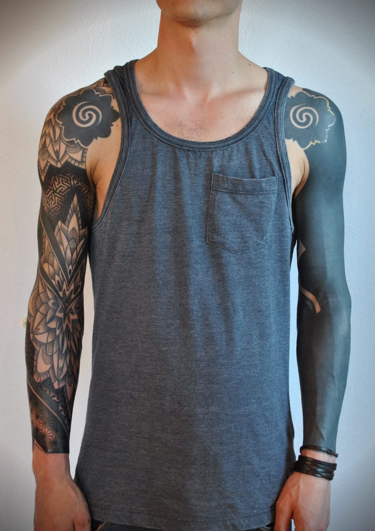 This look is unapologetically bold. Rich imagery, strong contrast, and layered storytelling come together to create a presence that feels almost cinematic. It’s intense, expressive, and deeply rooted in classic tattoo culture.