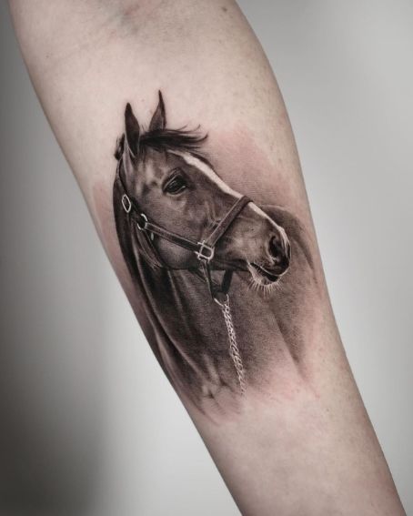 Located on the forearm, it is a great tattoo for anybody who appreciates lifelike detail. It is a fabulous design for horse lovers who want something classic and urbane.