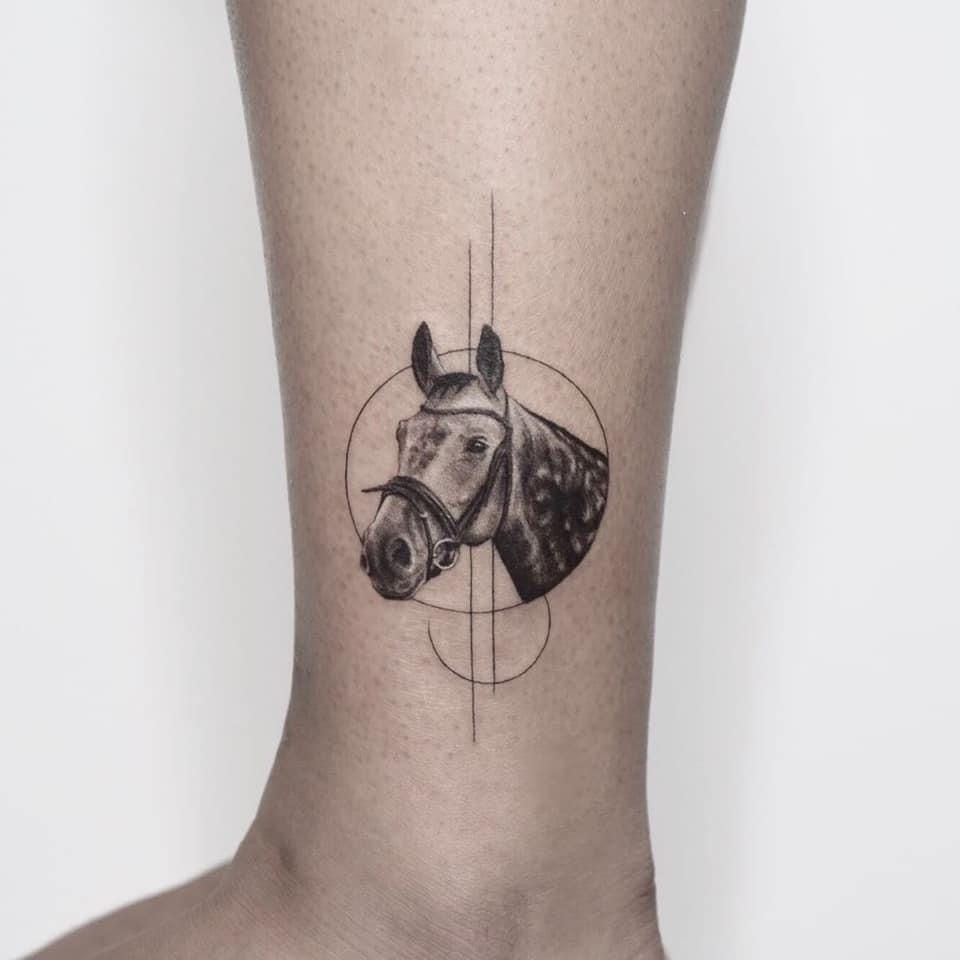 Simplicity is beauty, and that’s what this tattoo is all about. A simple, small outline of a horse head, framed by faint geometric lines gives it an air of modernity and style without overpowering spirit.
